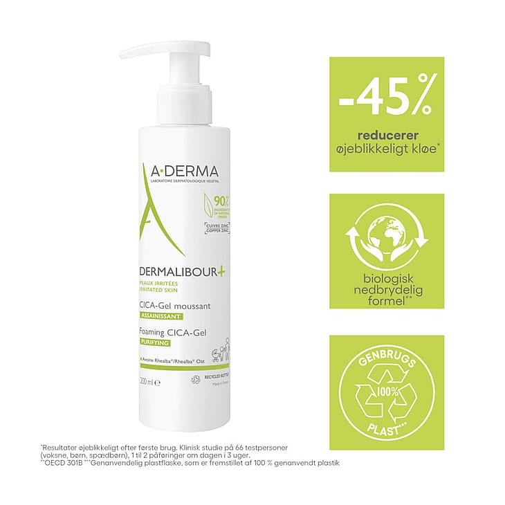 Använd på vått ansikte och/eller kropp och skölj sedan av. Följ gärna upp med A-Derma Dermalibour+ CICA-Cream