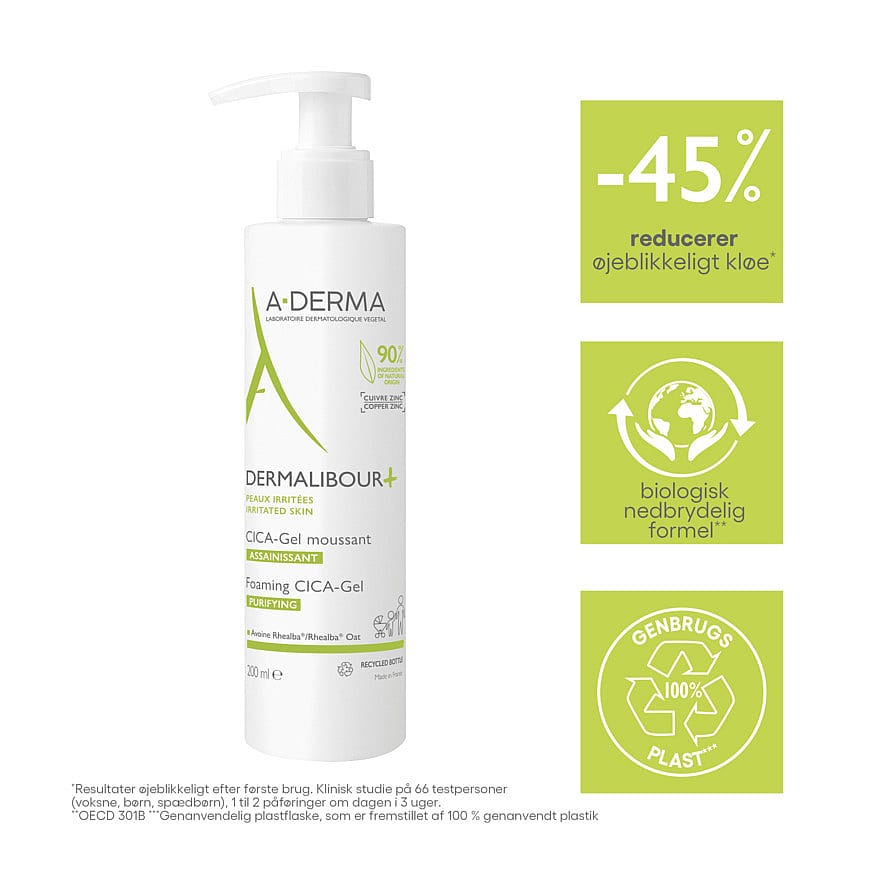 Använd på vått ansikte och/eller kropp och skölj sedan av. Följ gärna upp med A-Derma Dermalibour+ CICA-Cream