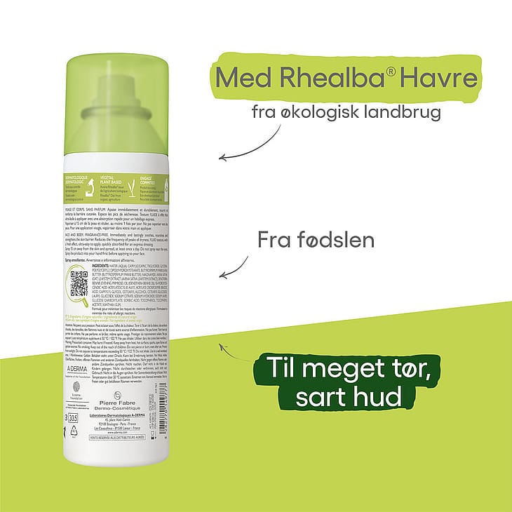Mjukgörande spray med för torr till mycket torr och irriterad hud. Dämpar irritation i huden orsakad av hudtorrhet och reducerar klåda. Kan användas från nyfödda.