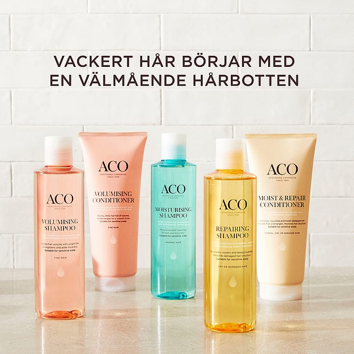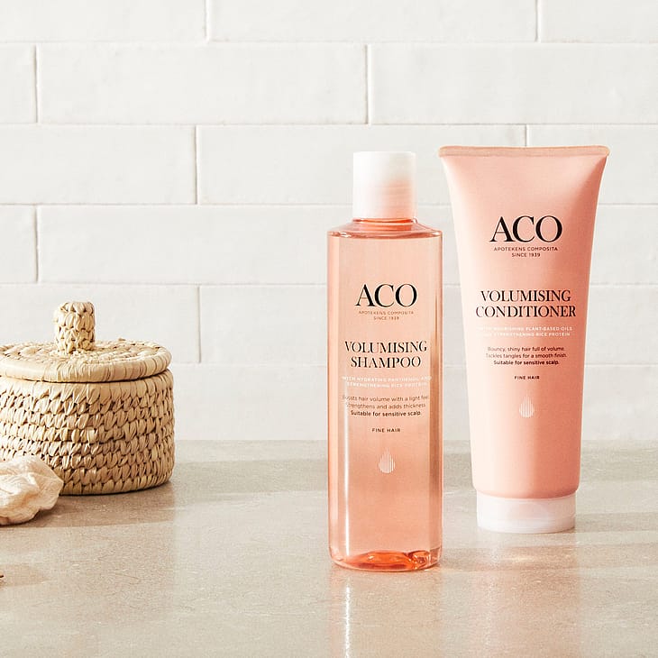 Användning: Applicera genom längderna efter schamponering, låt verka i minst tre minuter och skölj sedan ur. Använd i kombination med ACO Volumising Shampoo.