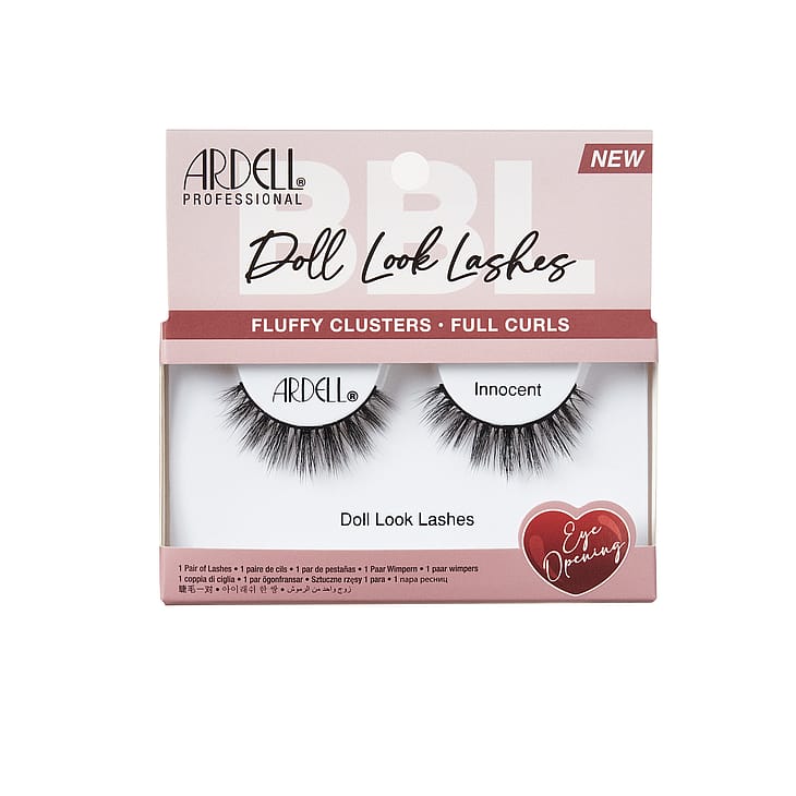 Doll Look Lashes rundade silhuett gör att ögonen ser större, vaknare och mer uttrycksfulla ut samtidigt som ögonformen balanseras. Få en drömsk, docklik blick som öppnar upp ögonen. Fluffiga kluster, en full curl och strån som är längre på mitten av fransen skapar en flirtig, voluminös look. Dessa underbart mjuka, glammiga fransar är perfekta för både vardag och fest. Veganska.