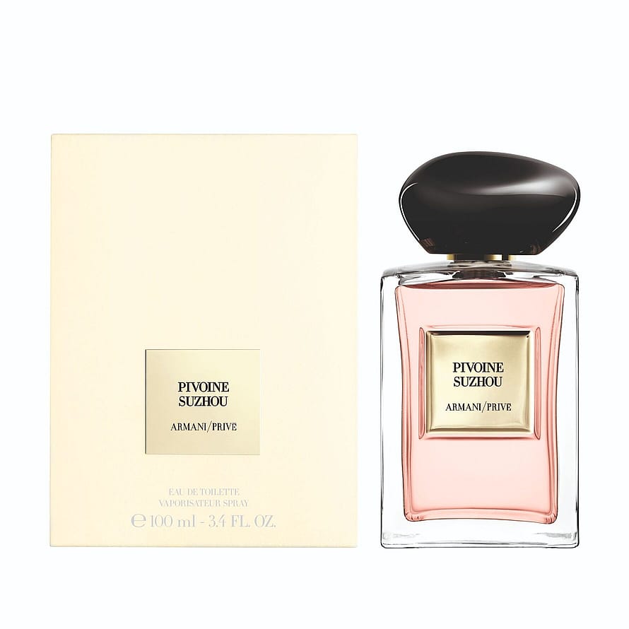 Giorgio Armani Privés Pivoine Suzhou EdT är en hyllning till Suzhous klassiska trädgårdar, även omskrivna som "Orientens Venedig". Doften är en hyllning till vackra trädgårdar genomskurna av kanaler och broar, vars grönska hämtar sin näring från Yangtzefloden, pagoder som skymtar bakom trädgårdsmurarna och pioner som behagar ögat med sin blomsterprakt.