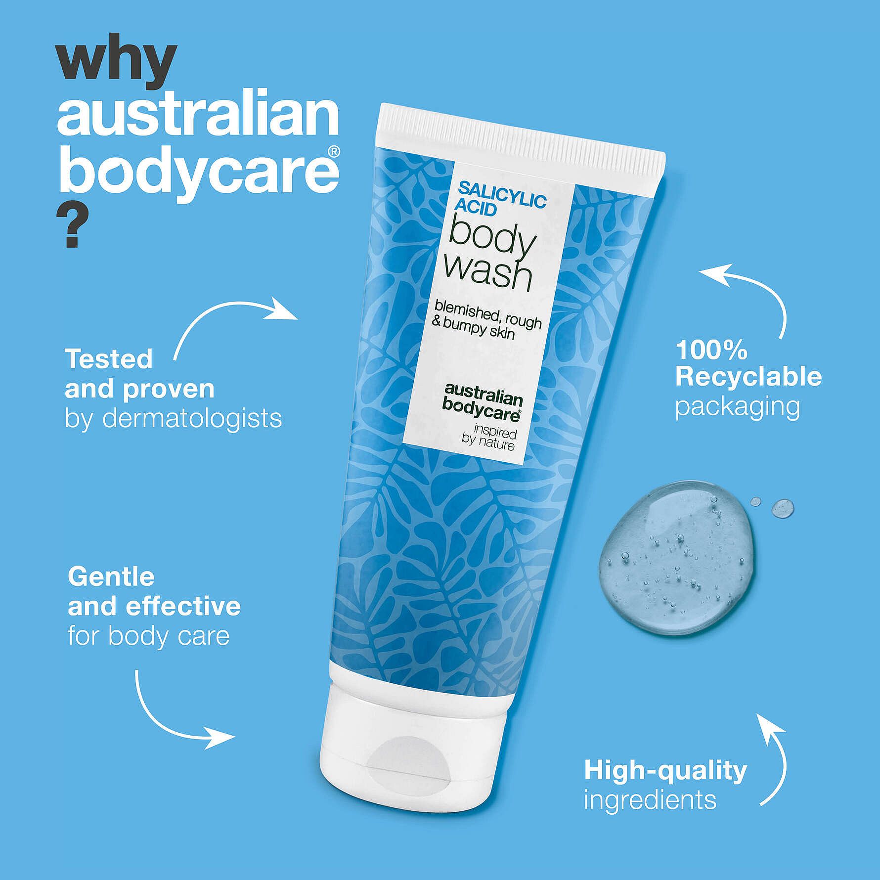 Salicylic Acid Body Wash från Australian Bodycare är framtagen för att användas dagligen på hud som lätt får finnar på kroppen – särskilt på ryggen, rumpan, bröstet och axlarna.