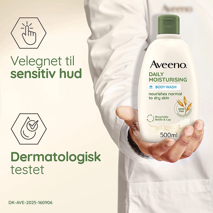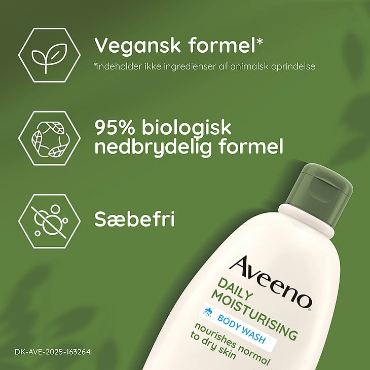 Aveeno® Daily Moisturising Body Wash 500 ml, milt parfymerad body wash som rengör huden utan att torka ut den. Lämnar huden ren, lugnad och påfylld med näring. Även lämplig för känslig hud. Formulerad med lugnande havre och hjälper till att bibehålla hudens naturliga fuktbarriär. Tvålfri formula.