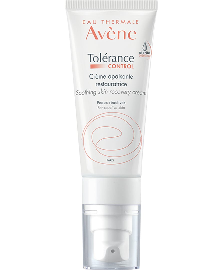 Avène Tolérance Control Soothing Skin Recovery Cream är en ansiktskräm för hyperkänslig, reaktiv eller intolerant hud. Tolérance Control Skin Recovery Cream innehåller den patenterade postbiotiska aktiva ingrediensen D-Sensinose™ som gör att ansiktskrämen lugnar känslor av obehag i huden som hetta, stramhet och irritation. Huden får intensiv återfuktning och barriären återställs. Parfymfri och utan konserveringsmedel tack vare ny innovativ steril tub.