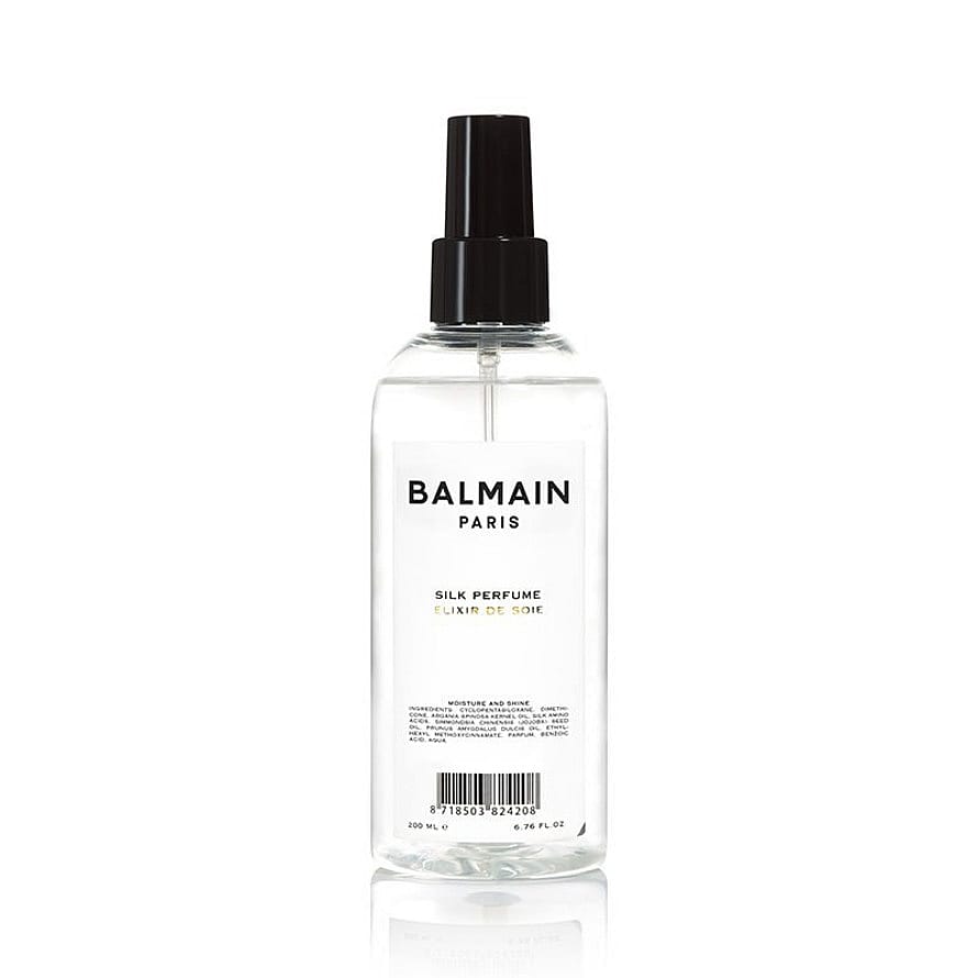 Balmain Hair Silk Perfume är en närande hårspray som gör håret mjukt och silkesglansigt. Den är berikad med ren arganolja och silkesprotein som bevarar fukten och skyddar skadat, torrt och svagt hår från yttre påverkan. Formulan ger ett långvarigt, silkeslent resultat med vacker glans. Den ikoniska doften från Balmain Hair innehåller stjärnanis, apelsinblomma, jasmin, gardenia, sandelträ och mysk, och frigörs subtilt genom hårets rörelser under dagen för en lyxig och frisk finish.