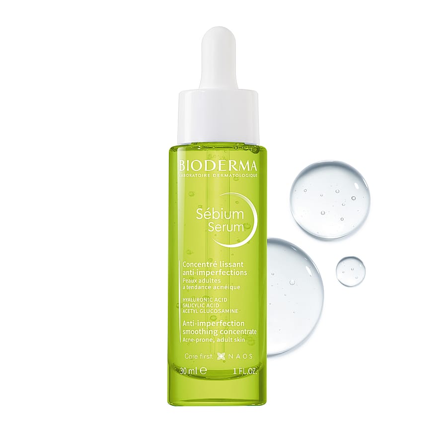 Sébium Serum är ett multiverkande serum som passar en vuxen, aknebenägen hud med orenheter. Serumet verkar snabbt på finnar, synliga och förstorade porer och kvarvarande märken, samt förhindrar uppkomsten av nya. Formulan innehåller två perfekt doserade och kompletterande ingredienser: salicylsyra exfolierar huden medan acetylglukosamin, ett sockerderivat, främjar cellförnyelsen. Den lätta texturen absorberas snabbt, och huden återfuktas omedelbart. Dag efter dag minskar finnar och fläckar synbart, porerna drar ihop sig och fina linjer reduceras – för en hud som ser klarare och slätare ut. Långvariga resultat.
