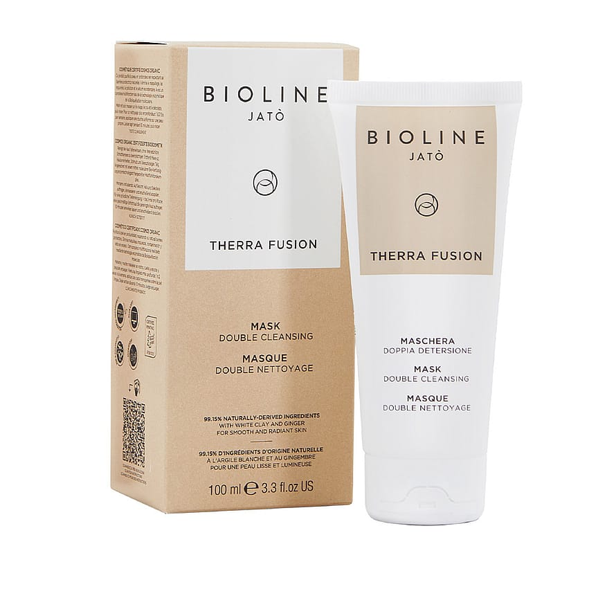 Mask Double Cleansing är en rengöring med en dubbelverkan. Klassisk rengöring som används dagligen för att ta bort makeup från hela ansiktet, inklusive ögonen. Men kan också användas som mask för en djuprengörande och exfolierande verkan De aktiva ingredienserna från vit lera och ingefära tar effektivt bort föroreningar, överskott av talg och makeup. Huden blir otroligt slät, len och fräsch. Dessutom är rengöringen tillräckligt snäll för att användas av alla hudtyper och respekterar hudens naturliga skyddsbarriär och torkar inte ut huden. Eco-certifierad av Cosmos Organic.