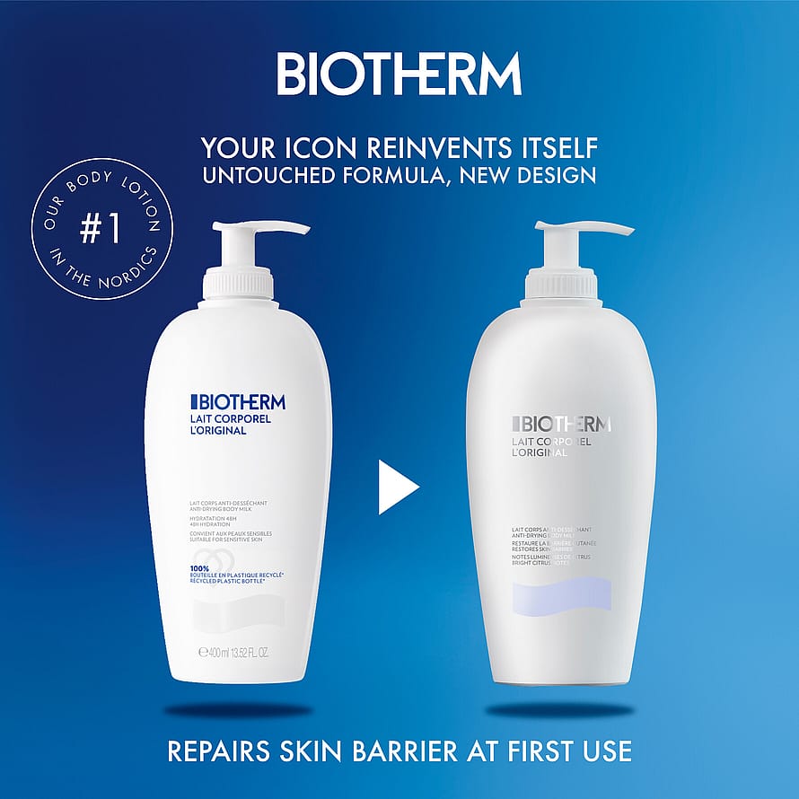 Biotherm Lait Corporel Body Lotion är en fräsch och återfuktande bodylotion för alla hudtyper. Formulan återfuktar huden och tas snabbt upp av huden utan att den känns fet. Innehåller extrakt av citrus och gör och lämnar huden mjuk och smidig Huden får näring, fuktbarriärerna stärks och elasticiteten ökar. Doften ger en ren och fräsch känsla av välbehag.