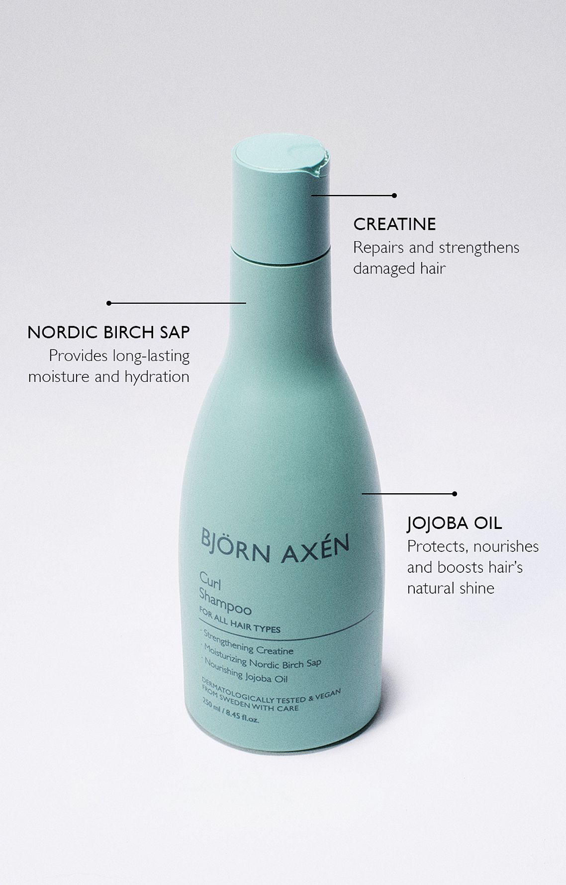 Detta djupt återfuktande schampo är berikat med Kreatin, Nordisk Björksav och Jojobaolja som reparerar, återfuktar och ger näring till håret för glans och spänstiga, definierade lockar.