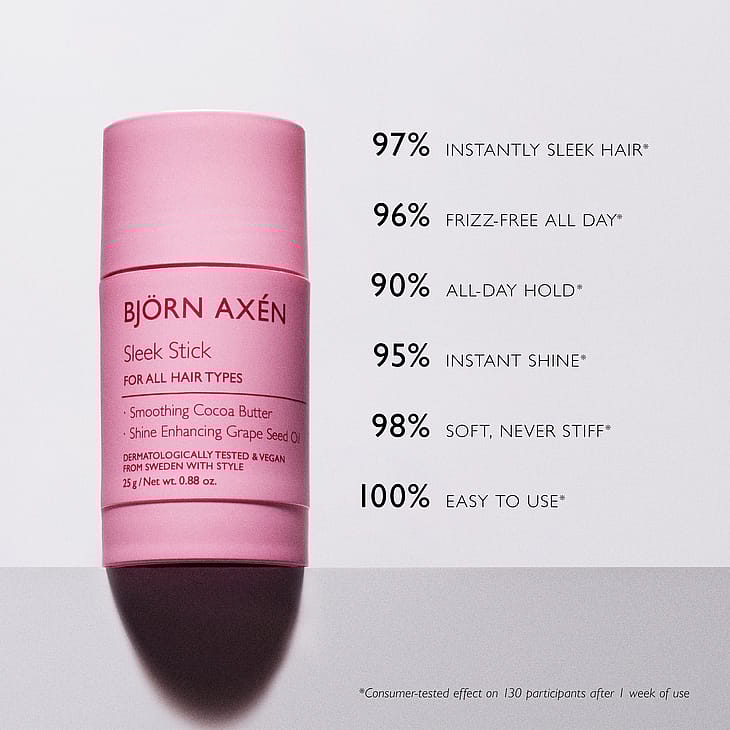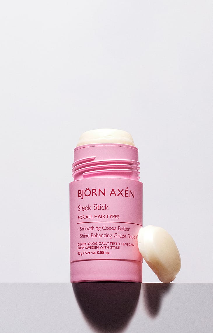 Vaxet ger medium stadga och fixerar frisyren utan att håret känns stelt, är lätt att tvätta ur och lämnar inga rester. Berikat med extrakt av Läkemalva, Kakaosmör och Druvkärnolja för att släta ut, återfukta och ge extra glans. Stiftet är lätt att använda och praktiskt att ha i handväskan för snabb styling när du är på språng – perfekt slätt hår med ett enda svep!