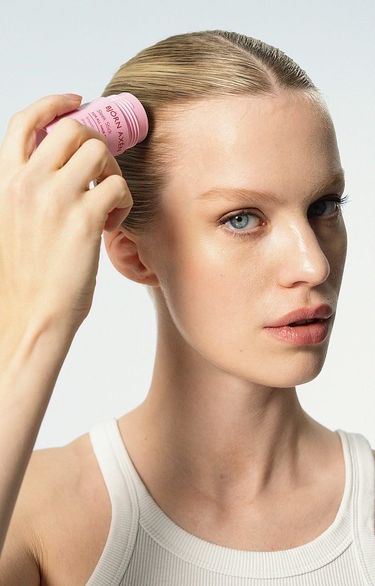 Applicera direkt i torrt hår. Dra försiktigt Sleek Stick över de områden du vill styla. För extra slät effekt kan du dra en borste genom håret efter applicering, eller använd fingrarna.
