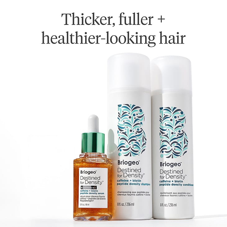 Destined for Density™ Caffeine + Biotin Peptide Density Conditioner kombinerar vetenskapligt bevisade ingredienser som kopparpeptider och zink med nödvändiga vitaminer som biotin och vitamin E för att hjälpa till att främja ett hår som ser tjockare ut. Detta balsam innehåller koffein, grön kaffeolja och CoQ10 för att främja näringsrik mikrocirkulation till hårbottnen och hårrötterna för ett hår som ser fylligare och friskare ut. Produkten är vegansk.