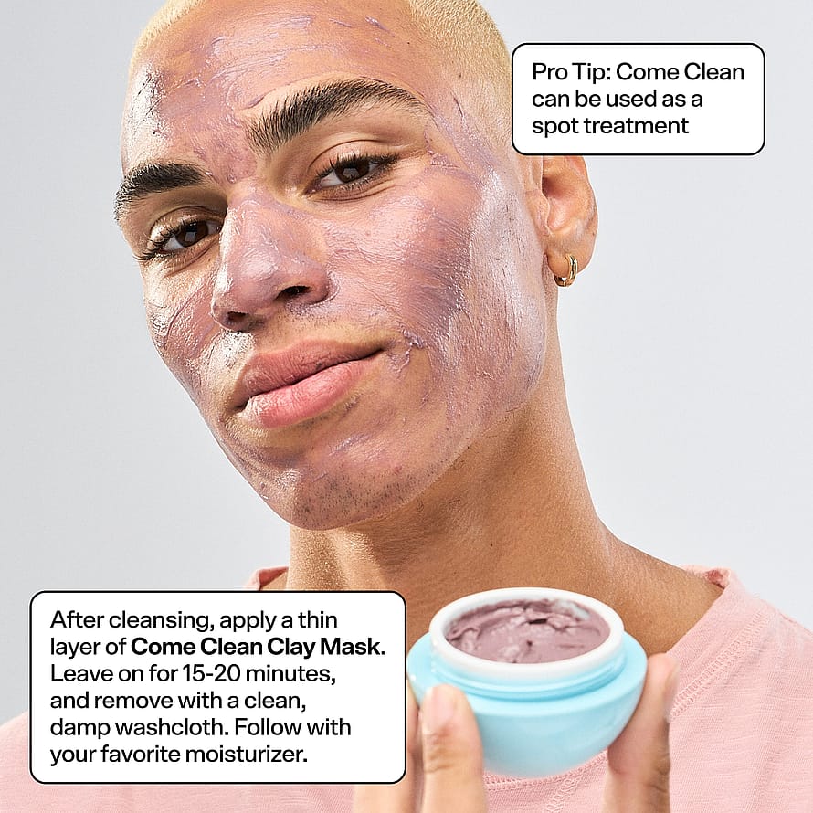 Bubble's Come Clean Detoxifying Clay Mask är en krämig brasiliansk lila lermask som varsamt drar ut orenheter och rensar tilltäppta porer för en veckovis djuprengöring utan den typiska torrheten och irritation som lermasker ofta kan ge.