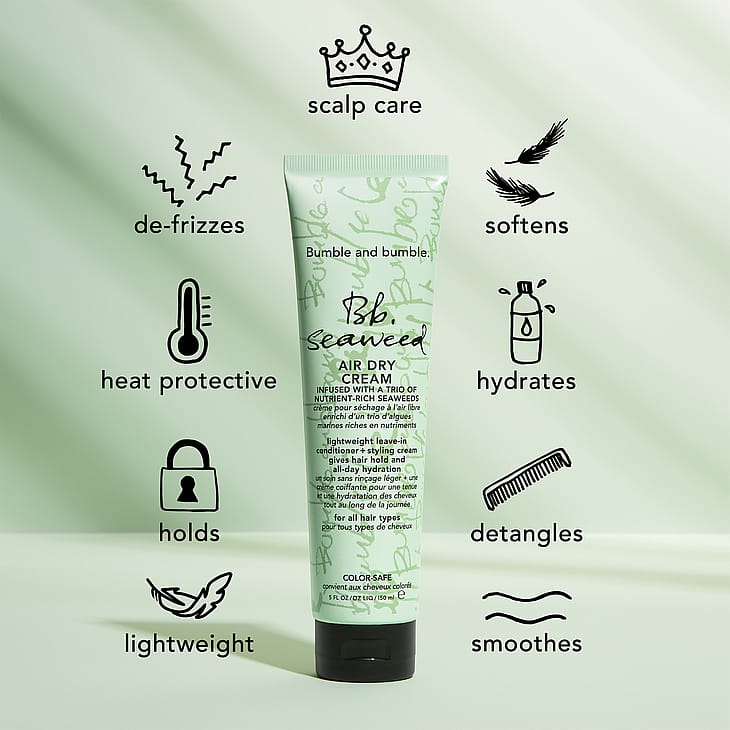 Lätt leave-in balsam + stylingkräm som ger håret stadga och återfuktning hela dagen. VAD: Seaweed styling (ditt hår kommer att tacka dig senare). Denna mångsidiga leave in, med en tillsatt trio av näringsrik kunglig sockertång, Stillahavskelp och gröna mikroalger är ett enkelt hjälpmedel för enkla, lufttorkade stilar och ger en omedelbar dubbel minskning av frizz som varar hela dagen jämfört med obehandlat hår. Lika delar leave-in balsam och stylingkräm –– den ger närande återfuktning hela dagen, minskar frizz + flygigt hår och ger en mjuk stadga för perfekt lufttorkad stil (dag eller natt). Dessutom hjälper det till att upprätthålla en optimal hårbottenmiljö. En snygg look utan ansträngning? Från hav till stad till salong, vår Seaweed ger dig just det.