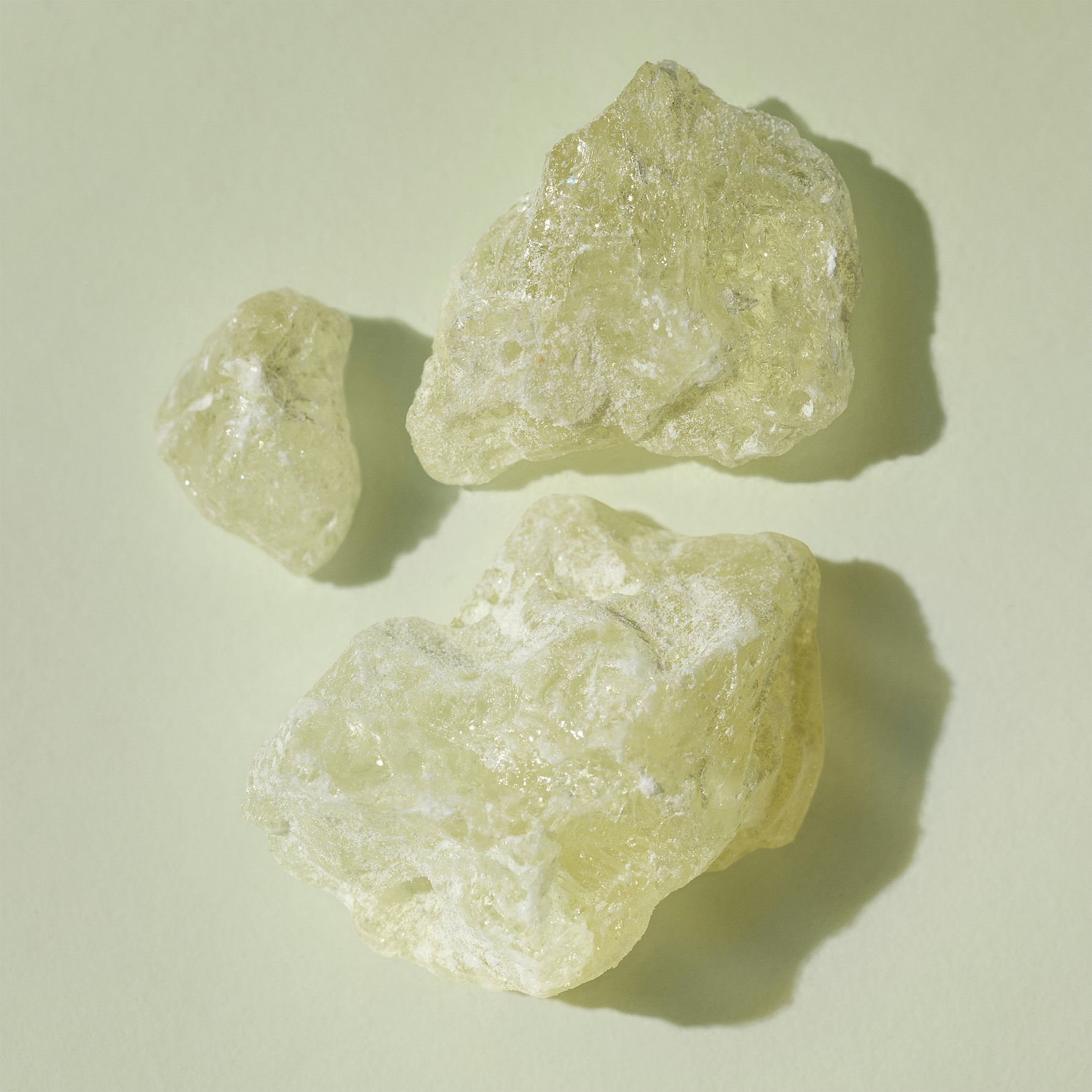 Flaskan är designad i frostat glas med en pistagegrön ton och matchande band – en visuell tolkning av doftens spontana och fria uttryck.
