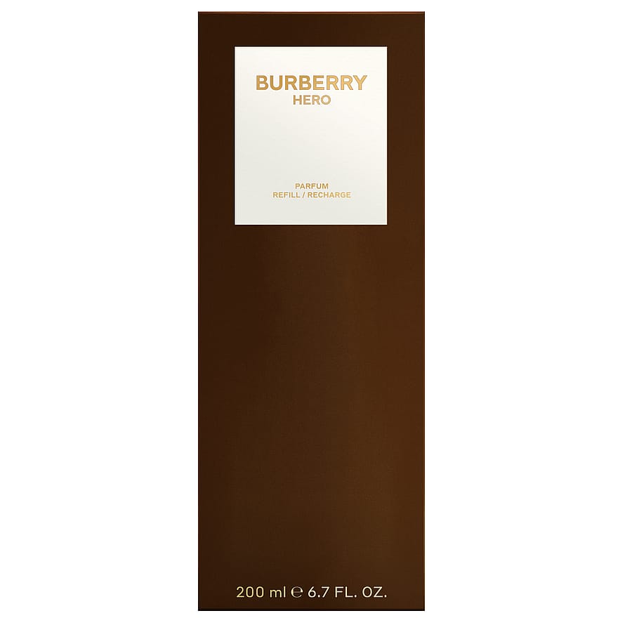 Burberry Hero Parfum är en intensiv och kraftfull doft i Hero-kollektionen. Den speglar modern maskulinitet – autentisk och modig, med förmågan att ständigt överträffa sig själv och omfamna det extraordinära. Kompositionen öppnar med cypressolja som ger en frisk och aromatisk start. I hjärtat finns amyris som tillför djup och en lätt kryddig värme. Basen domineras av den ikoniska cedertrion – oljor från Apalacherna, Atlasbergen och Himalaya – som skapar intensitet och träig karaktär. Resultatet är en djärv och magnetisk parfym med maskulin karaktär.