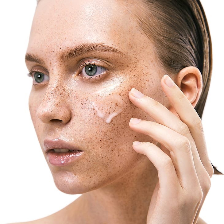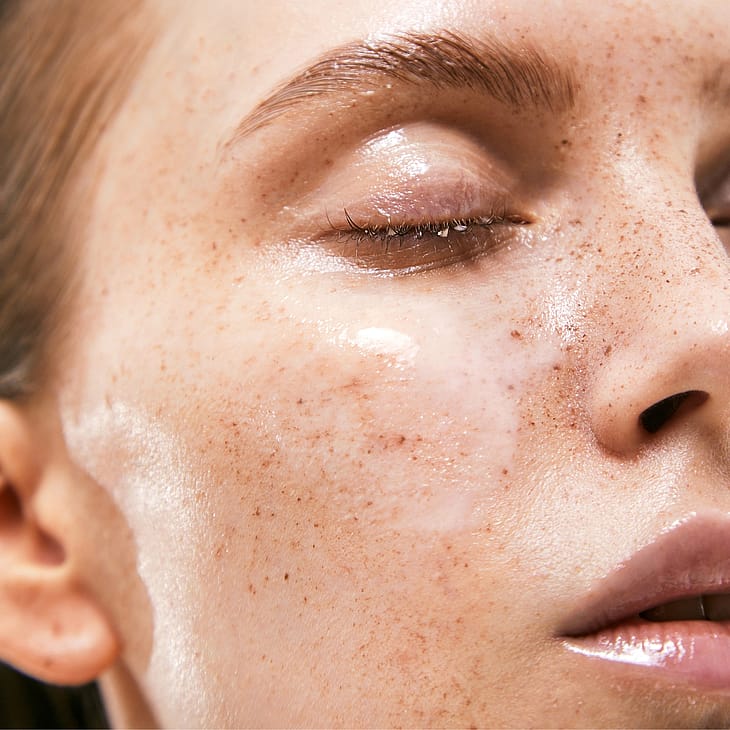 2. Fördela försiktigt över ansiktet, med fokus på torra eller känsliga partier.