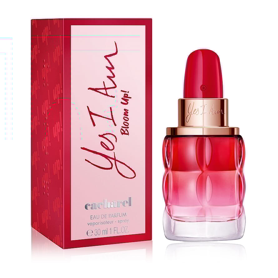YES I AM Bloom Up är doften av glädje och optimism. En krämig och sprudlande doft som du aldrig tidigare sett från Cacharel. Den ikoniska läppstiftsliknande doften YES I AM är nu klädd i en vacker genomskinlig röd flaska, en färg som symboliserar drivkraft och optimism, och en glansig finish för att lyfta fram glasets vackra mönstrade struktur.