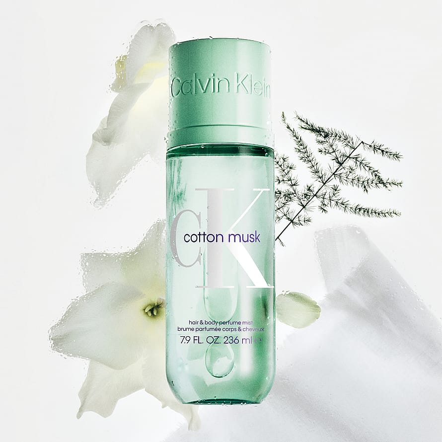 CK Hair & Body Mist Cotton Musk är en unisex doftmist som omsluter dig som en andra hud. Doften är silkeslen och sensuell – som solkysst hud insvept i en mjuk, blommig aura. En modern "comfort scent" med strålande energi, perfekt att bära varje dag. Kompositionen öppnar med en solig blomnot tillsammans med ambrette absolut och rosépeppar – en gnistrande fräschör som möter mjuk värme. I hjärtat blandas saltad kokosnöt och vaniljextrakt med mjuk cashmeran för en krämig, silkeslen känsla. Basen vilar i ambroxan, ekmossa absolut och mysk, vilket skapar en omslutande och sensuell karaktär som dröjer sig kvar. Formulan är fjäderlätt och får huden att kännas mjuk och återfuktad – för en doftupplevelse som känns lika mycket som den doftar.