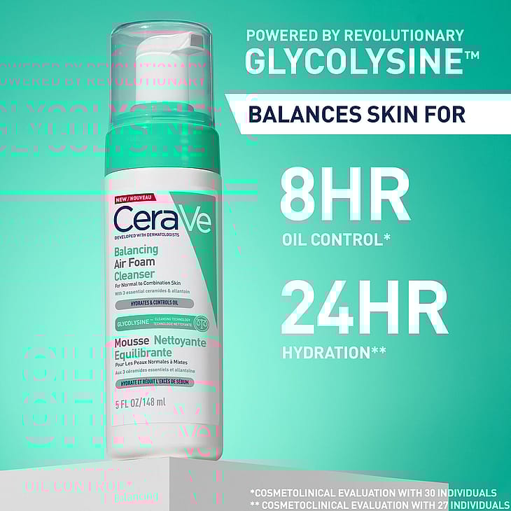 Rengöringsskum för normal till kombinerad hud. Innehåller Glycolysine-rengöringsteknologi som återfuktar där huden är torr och reducerar sebum och olja där huden är fet. Innehåller tre essentiella ceramider och allantoin, rengör utan att störa hudens skyddande barriär. Avlägnsar smuts, smink och solskyddsfaktor. Utan parfym. Täpper inte till porerna.
