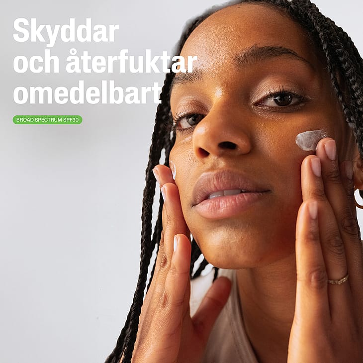 Cetaphils dagkräm med SPF 30 skyddar mot solens strålar samt återfuktar och lugnar huden och stärker hudbarriären. Krämen ger en motståndskraftig och mer välmående hud.