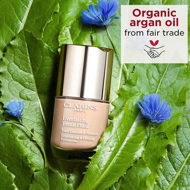 En anti-ageing foundation för alla kvinnor 30+ som vill ha en flytande foundation som ger en ungdomlig lyster till hyn. Döljer felaktigheter i huden, ger omedelbar fasthet och en otrolig lyster samtidigt som den låter huden andas. Tack vare sitt innehåll av cikoria-extrakt och rödalg, återfår huden sin vitalitet dag för dag. Ekologiskt havresocker ger fasthet och fyllighet till huden och ekologisk arganolja ger komfort. Texturen är sensorisk och behaglig och huden håller sig smidig och återfuktad uppemot 24 timmar. Passar alla hudtyper. Medium-täckning med satin-finish. Spf 15. Icke-komedogen.