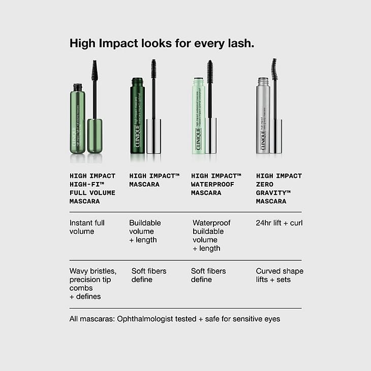 - Cliniques mest volymgivande mascara för den vackraste franslooken. High Impact High-Fi™ ger fransarna 230% mer volym på en gång.*