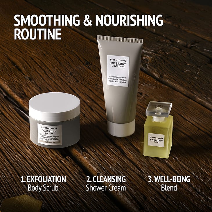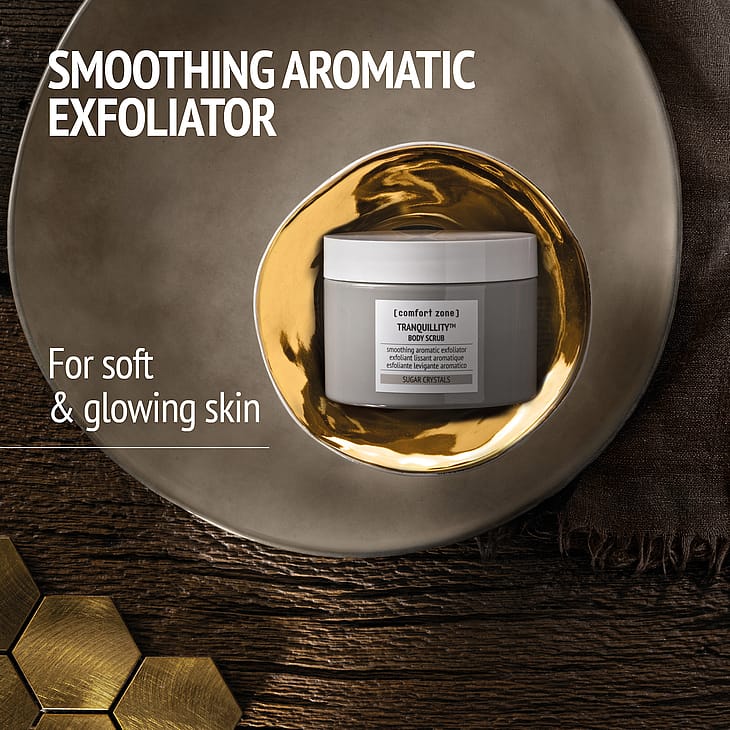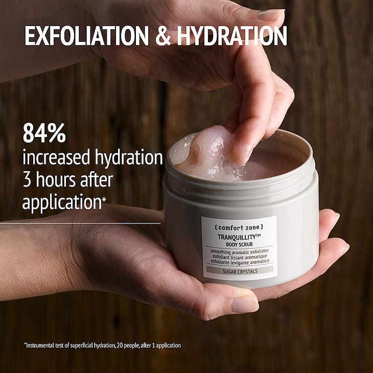 Få tillbaka en mjuk och hälsosam hud med Tranquillity™ Body Scrub, kroppsexfolieringen med sockerkristaller!