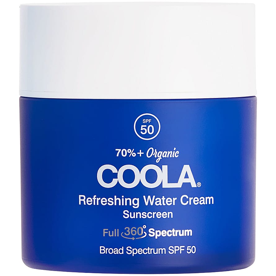 Refreshing Water Cream SPF50 är en ekologisk, fuktgivande creme med hyaluronsyra och uppfriskande kokosvatten. Den lägger sig lätt och viktlöst på huden med ett kraftfullt SPF50-skydd. Med COOLAs växtbaserade BlueScreen ™ Digital De-Stress ™-teknologi hjälper denna creme också till att motverka effekterna av blått ljus, infraröd strålning och föroreningar för att skydda din hud från vardagens stressfaktorer. Lättviktig skydd med SPF50. Innehåller hyaluronsyra och kokosvatten. Skyddar mot HEV & IR-ljus.