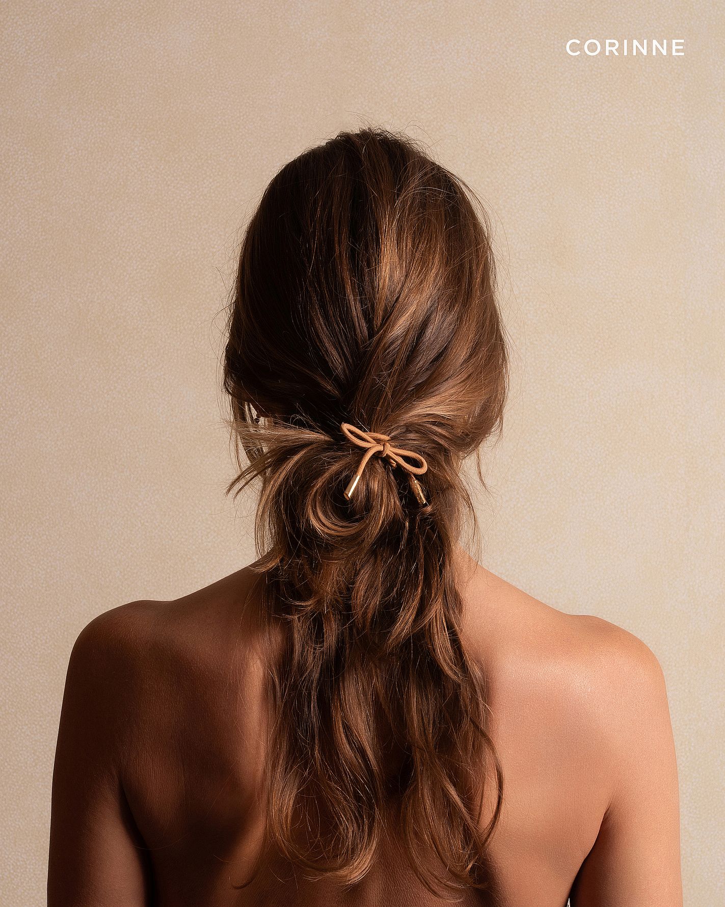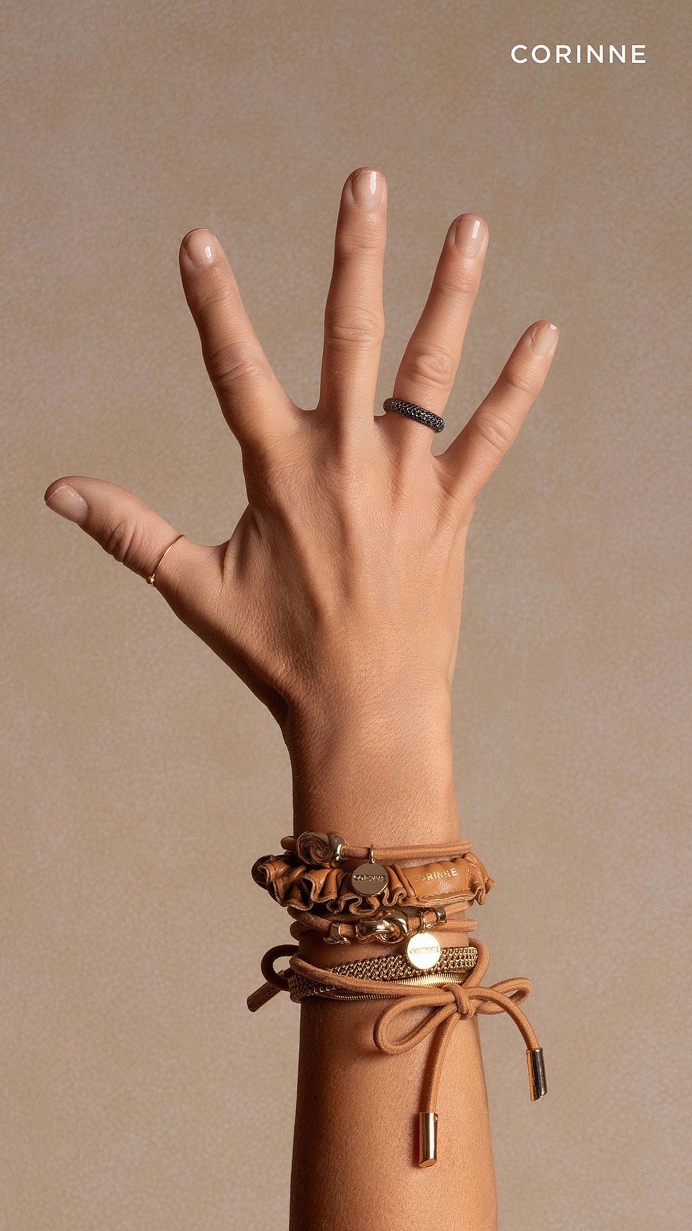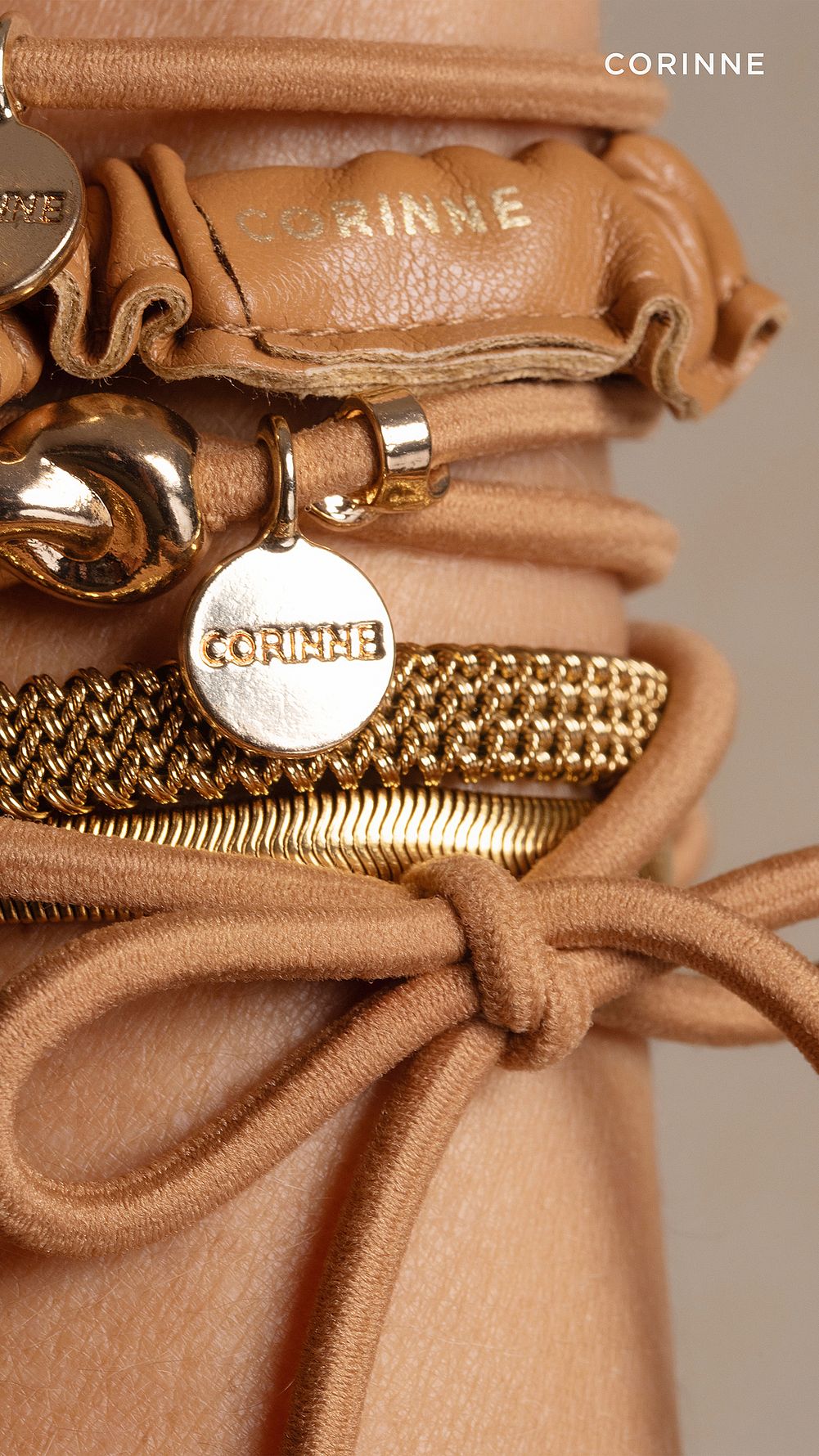 Vår klassiska, högkvalitativa hårsnodd för alla typer av hårtyper med våra guldfärgade metalldetaljer. Den enkla lösningen för din vardagslook!