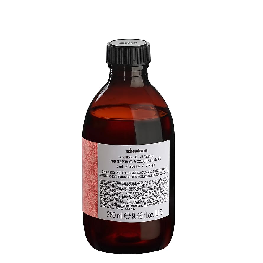 Davines Alchemic Shampoo Red är ett färgförstärkande schampo för röda eller mahognyfärgat hår som vill framhäva sin hårfärg. Passar även för att göra blonda hår rosa.