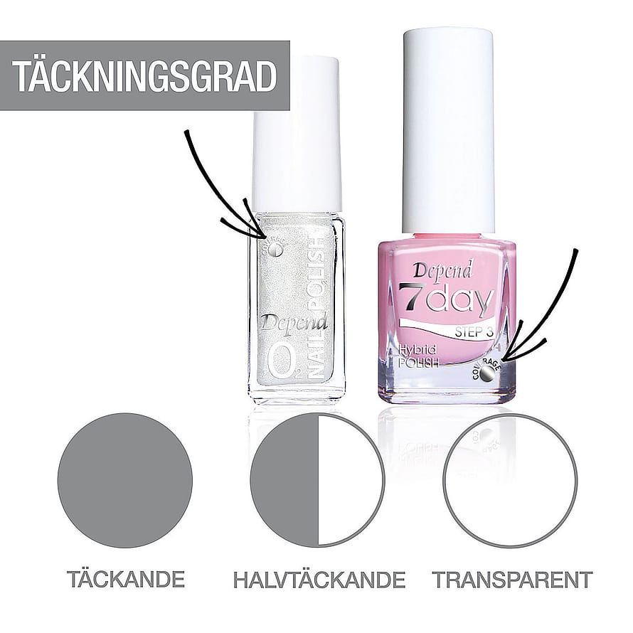 Depend 7day är lacksystemet för dig som söker ett nagellack med superglans, högklassig hållbarhet och ”gel feeling”. Denna hybridformula håller i upp till en vecka, är lätt att applicera och du tar enkelt bort lacket med Depend Nagellackremover. 5 ml. Vegansk formula, innehåller ej råvaror med animaliskt ursprung. Tillverkad i Sverige.