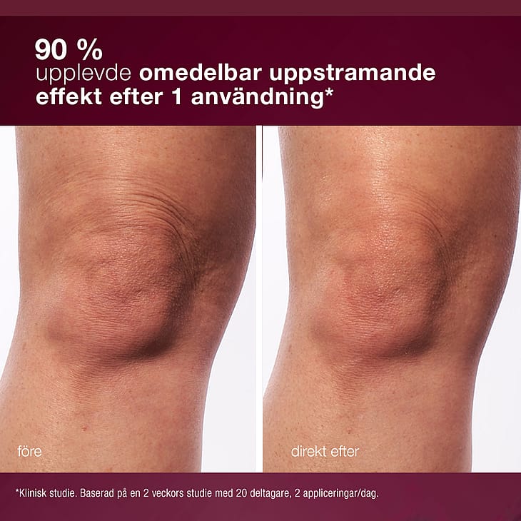 Applicera på utvalda områden, massera med uppåtgående strykningar. Använd morgon och kväll.