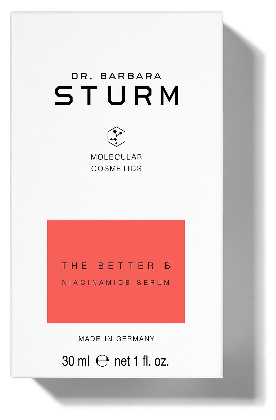 Dr. Barbara Sturms The Better B Niacinamide Serum är specifikt framtagen för att hjälpa till att minimera porernas storlek och förfina hudytan. Serumet innehåller ett kraftfullt ingredienskomplex med ren vitamin B3 och ektoin, en aminosyra som hjälper till att skydda mot hyperpigmentering och för tidigt åldrande av huden. Marina plankton & panthenol stärker hudbarriären, öka återfuktningen och stödja hudens naturliga återställande processer för en jämnare, mjukare och förfinad hudstruktur. Serum som hjälper till att minimera porer. Innehåller ujämnandevitamin B3 och ektoin. Huden ges en jämnare hudton och hudstruktur.