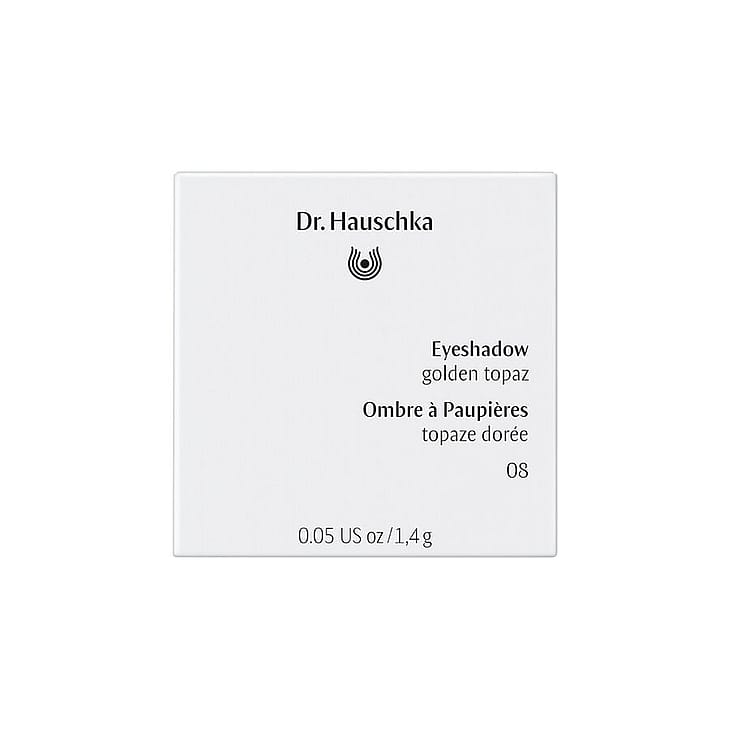 Eyeshadow från Dr. Hauschka ger strålande ögon med hjälp av färgstarka, skimrande ögonskuggor som intensifierar all ögonmakeup. Sammansättningen med mineralpigment och extrakt av läkeväxter - särskilt svart te och silke - vårdar den känsliga huden runt ögonen. 08 Golden Topaz.