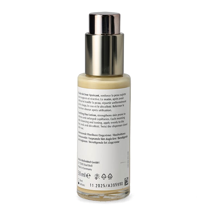 Soothing Day Lotion är en av tre nya, fantastiska lotions från Dr. Hauschka. Soothing Day Lotion lugnar känslig hud samt hud med tendens till rodnad. Även hud med synliga blodkärl verkar mindre irriterad och mindre framträdande. Har en silkeslen textur som ger huden långvarigt skydd hela dagen. Värdefulla extrakt av ros, gurkört och daggkåpa stimulerar hudens naturliga olje- och fuktproduktionsprocesser samt reducerar stramhet, stärker huden och främjar en jämn hudton. Rekommenderas för känslig hud med tendens till rodnad.