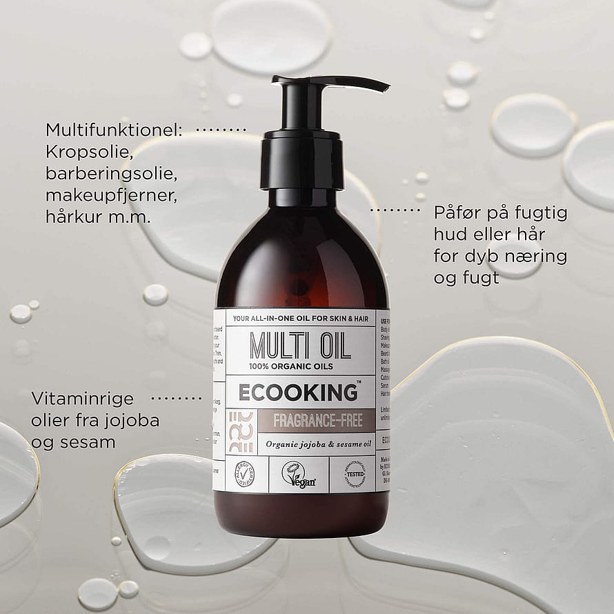 Multi Oil innehåller bl.a. ekologisk jojobaolja och ekologisk sesamolja.