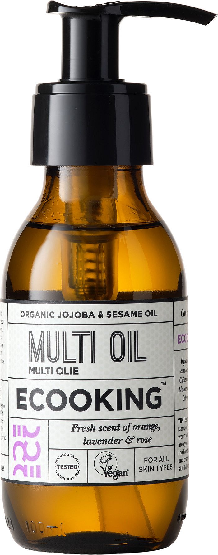 Multi Oil innehåller bl.a. ekologisk jojobaolja och ekologisk sesamolja.