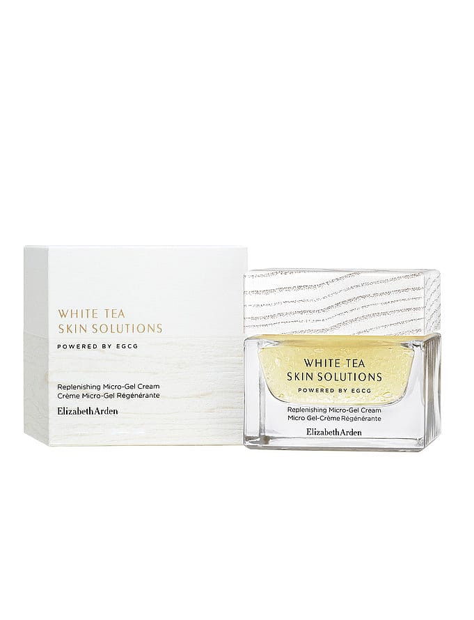 White Tea Skin Solutions Replenishing Micro-Gel Cream är en ansiktskräm som innehåller antioxidantrika EGCG* och över 6 000** fina mikrodroppar som omedelbart återfuktar, ljusar upp och fulländar hudens utseende. På bara 15 minuter fördubblas hudens fuktnivå*** och efter 14 dagar är 95 % överens om att fina linjer har reducerats****. Denna lätta gelkräm är framtagen med uppljusande Angelica Root Extract och smälter mjukt in i huden för att ge omedelbar och långvarig återfuktning. Krämen är även kliniskt bevisad att förbättra hudtexturen och elasticiteten. Passar alla hudtyper - även en känslig hud. Vegansk.