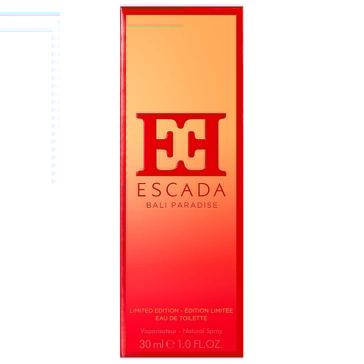 Upptäck den flörtigt blommiga känslan hos Escada Bali Paradis Eau de Toilette for Women. En ny och lekfull femininitet växer fram: ljuvlig, levande och naturligt förförisk. En uppdaterad doftsignatur från Escada: uppfriskande klarhet tillsammans med mättade toner signalerar djärvhet och självförverkligande. Escada Bali Paradise är framtagen av parfymörsduon Nathalie Lorson och Coralie Spicher som sammanför exotiska doftnoter till en skimrande doft. Toppnoten kommer från drakfrukt: känd för sitt unika fruktkött och taggiga rosa skal. Hjärtnoten kommer från papegojblomman full av varma toner. En beroendeframkallande mix med basnoten i jordigt sandelträ. När doften utvecklas på huden har dess fascinerande essens en transformerande effekt. Upplevelsen av Escada Bali Paradise förstärks genom de klarorangea gradientfärgerna på flaskan och förpackningen. Maison-monogrammet framhävs i en mättad röd nyans. Denna fräscha, skimrande eau de toilette är en fulländad blommig upplevelse. Den perfekta sommardoften som tillför ännu mer djärvhet till Escada.