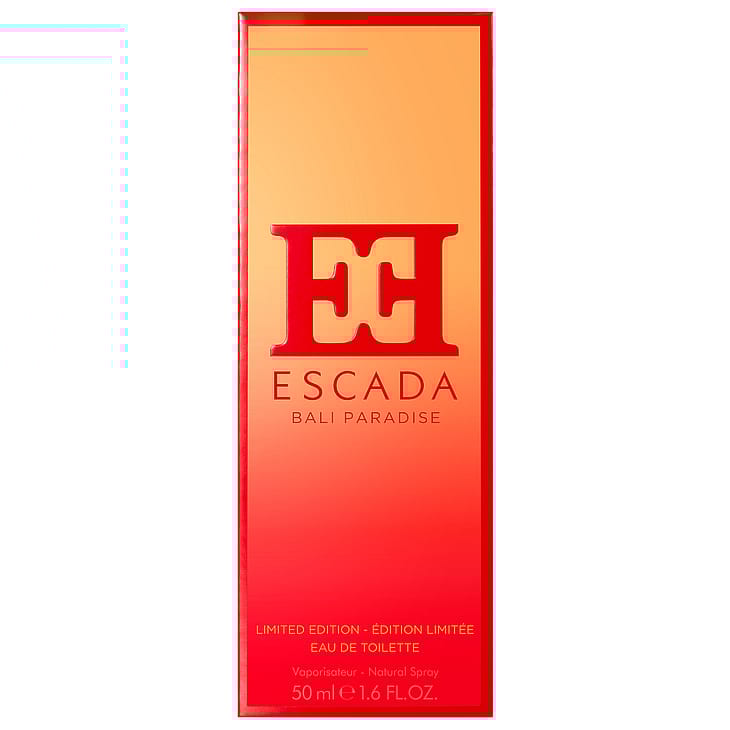 Upptäck den flörtigt blommiga känslan hos Escada Bali Paradis Eau de Toilette for Women. En ny och lekfull femininitet växer fram: ljuvlig, levande och naturligt förförisk. En uppdaterad doftsignatur från Escada: uppfriskande klarhet tillsammans med mättade toner signalerar djärvhet och självförverkligande. Escada Bali Paradise är framtagen av parfymörsduon Nathalie Lorson och Coralie Spicher som sammanför exotiska doftnoter till en skimrande doft. Toppnoten kommer från drakfrukt: känd för sitt unika fruktkött och taggiga rosa skal. Hjärtnoten kommer från papegojblomman full av varma toner. En beroendeframkallande mix med basnoten i jordigt sandelträ. När doften utvecklas på huden har dess fascinerande essens en transformerande effekt. Upplevelsen av Escada Bali Paradise förstärks genom de klarorangea gradientfärgerna på flaskan och förpackningen. Maison-monogrammet framhävs i en mättad röd nyans. Denna fräscha, skimrande eau de toilette är en fulländad blommig upplevelse. Den perfekta sommardoften som tillför ännu mer djärvhet till Escada.