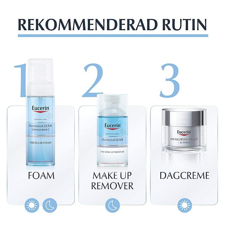 DermatoClean Micellar Eye Make-up Remover tar omedelbart, noggrant och varsamt bort både vattenfast och icke vattenfast ögonmakeup. Den milda och återfuktande ögonmakeup-removern är icke-fet, snabb och enkel att använda och lämnar inte kvar några rester. Huden känns väl rengjord, len och fräsch efter användning. Den passar alla hudtyper, även känslig hud, och har testats oftalmologiskt. Den är bevisat mild mot det känsliga området runt ögonen och är lämplig för kontaktlinsanvändare. Produkten är utformad för att vara skonsam men effektiv, vilket gör den idealisk för daglig användning. Resultatet är ett ögonområde som upplevs rent och återfuktat, utan några sminkrester.