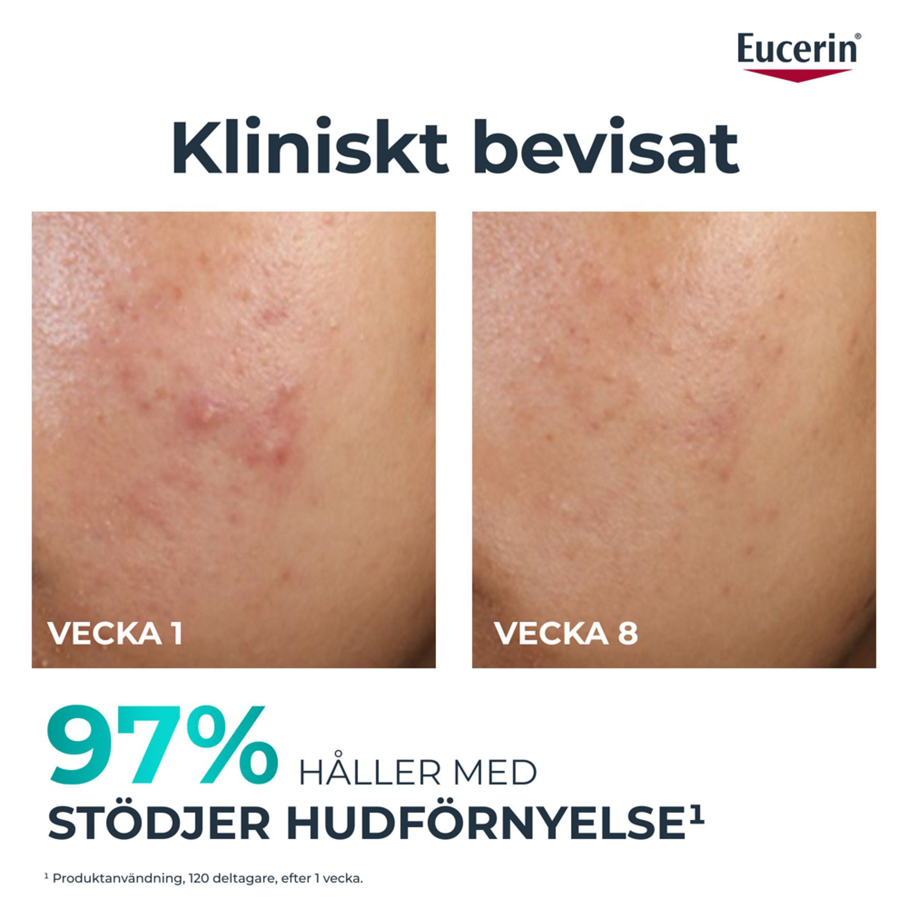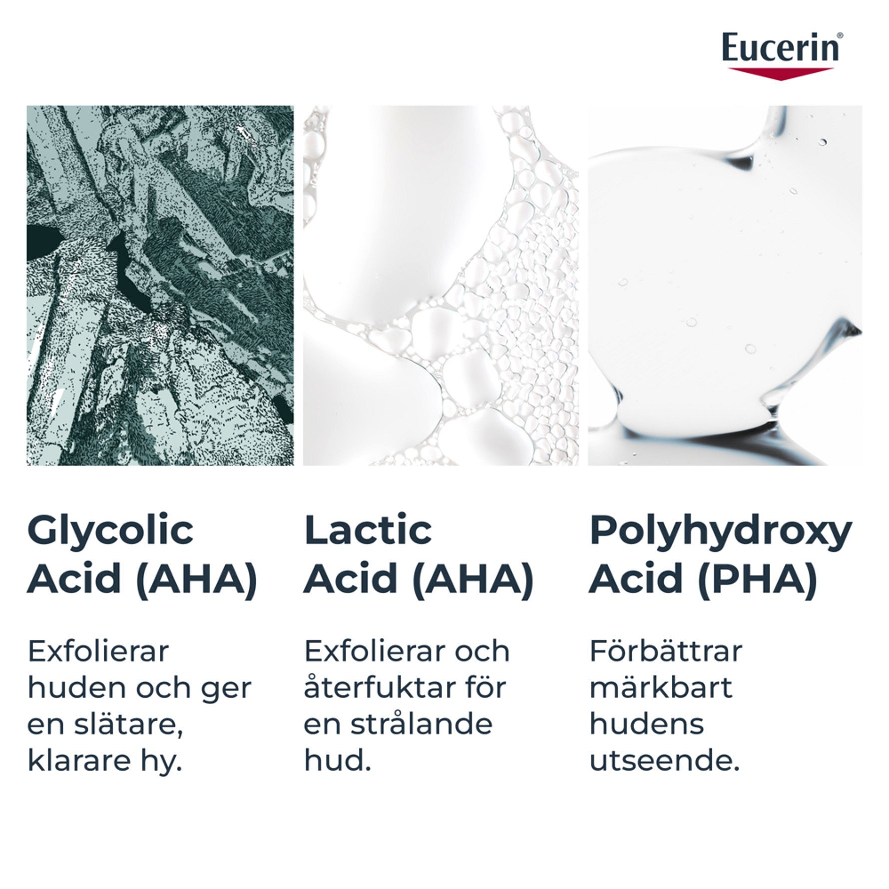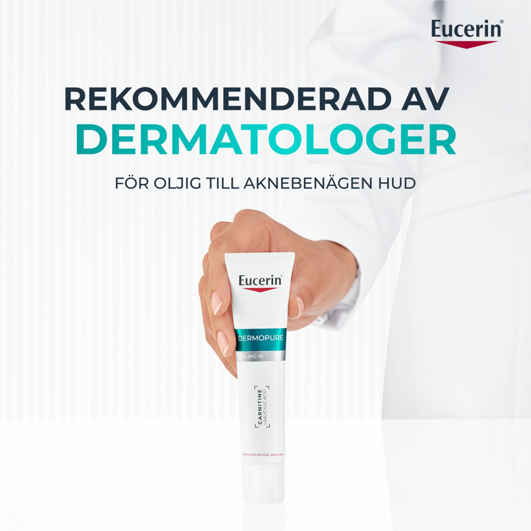 Eucerin Dermopure Peeling 10 är en koncentrerad kliniskt testad nattpeeling, som rekommenderas för att hjälpa till att synligt korrigera bestående finnar och att jämna ut hudens struktur. Den innehåller en 10% kombination av de dermoaktiva ämnena Salicylsyra (BHA), Glykolsyra (AHA) och Glokonolakton (PHA) som exfolierar huden, samtidigt som den återfuktas. Den korrigerar märken och hjälpter till att minska de första ålderstecknen. Huden blir synligt slätare och ljusare. Effektiv från dag ett. Passar från 12 år och för alla hudtyper. Parfymfri.