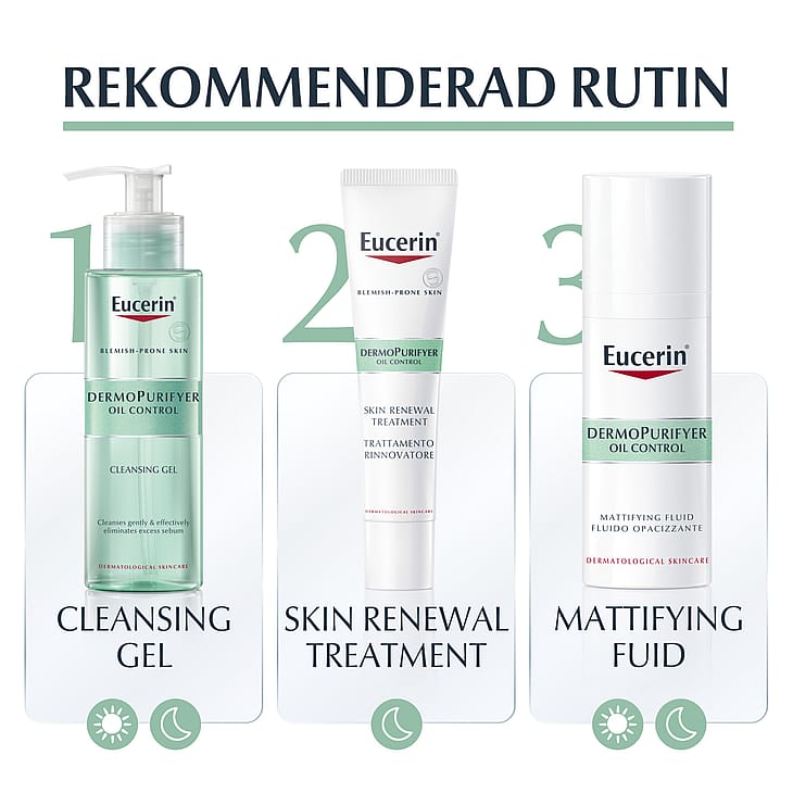 Denna effektiva behandling löser upp tilltäppta porer och tar bort döda hudceller. Den multiverkande formulan reducerar orenheter och motverkar uppkomsten av nya orenheter, samtidigt som den lugnar huden. DermoPurifyer Skin Renewal Treatment är en kemisk peelingprodukt för oljig eller aknebenägen hud som stödjer hudförnyelse för en renare och jämnare hud. Denna produkt innehåller Hydroxisyror som kan öka hudens känslighet för solen och särskilt risken att bränna sig i solen. Använd solskydd, bär lämpliga skyddande kläder och minimera solexponeringen medan du använder produkten och en vecka efteråt.