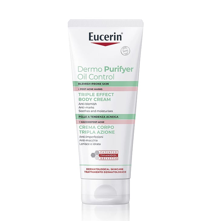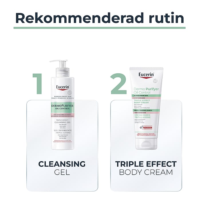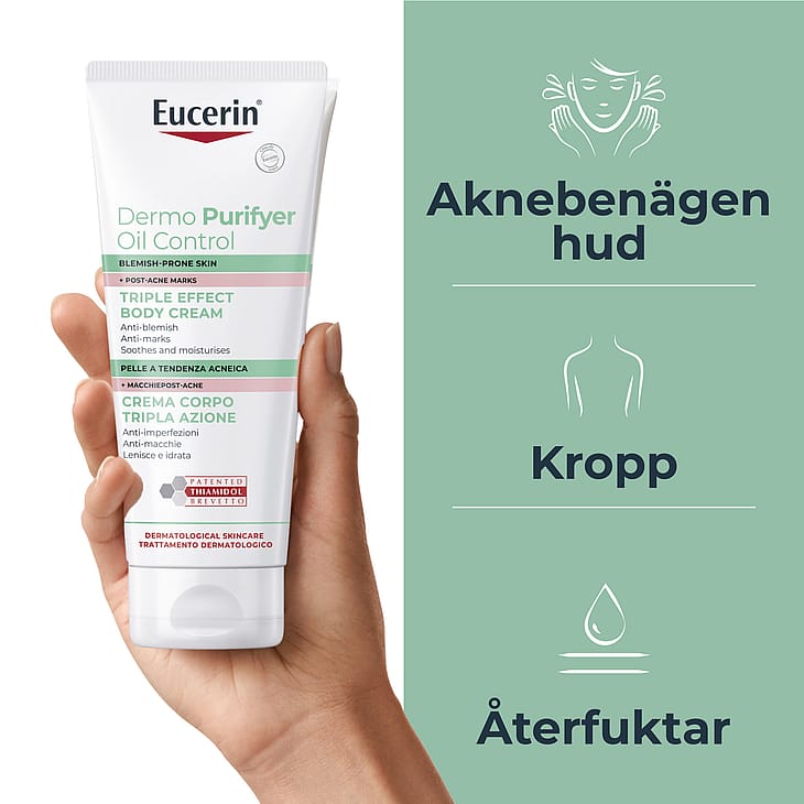 Eucerin DermoPurifyer Oil Control Triple Effect Body Cream är en kroppscreme för aknebenägen hud med trippelverkande effekt för berörda områden.