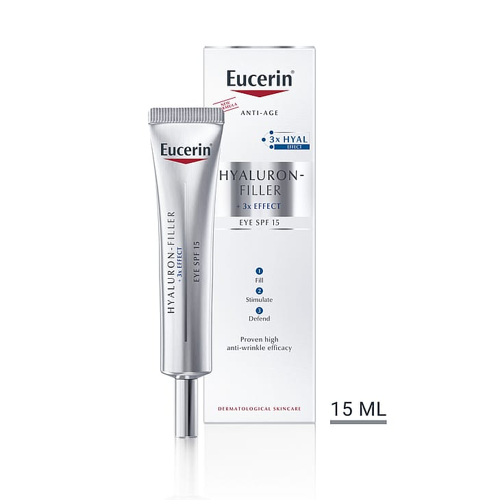 Eucerin Hyaluron-Filler + 3x Effect Eye Cream SPF15 är en ögonkräm som motverkar ålderstecken runt ögonen.
