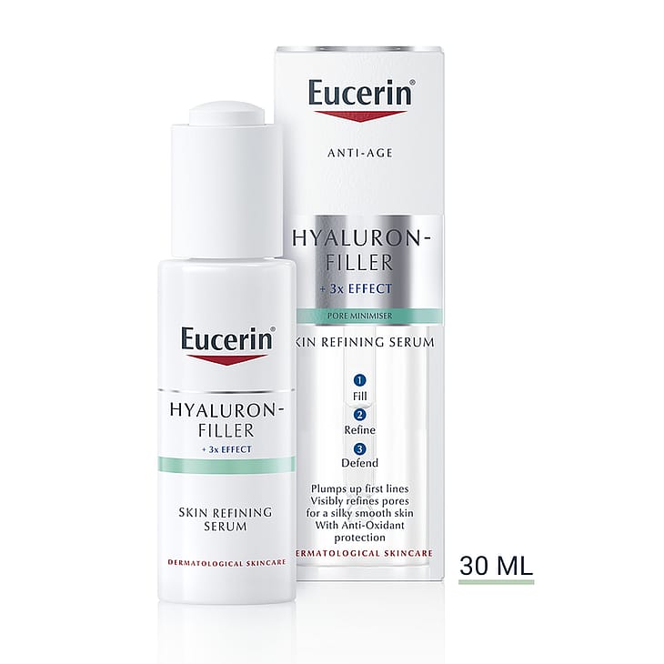 Eucerin Hyaluron-Filler +3x Effect Skin Refining Serum är ett anti-age serum för ungdomligare hud med mer lyster.