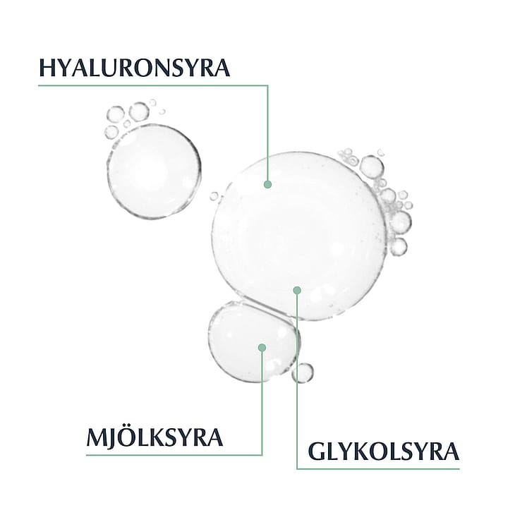 Applicera en eller två gånger per dag på väl rengjort ansikte innan din återfuktande creme. En lätt stickande känsla kan förekomma. Använd inte på irriterad hud; avbryt användandet om irritation uppkommer; konsultera en läkare om irritationen kvarstår. Undvik kontakt med ögonen och slemhinnor. Denna produkt innehåller Alpha Hydroxi-syror som kan öka din huds känslighet för solen och särskilt öka risken för att bränna sig i solen. Använd solskydd, bär lämpliga täckande kläder och minimera solexponering under tiden produkten används och en vecka efter. Förvara under 25°C. Mer information hittar du på insidan av förpackningen.
