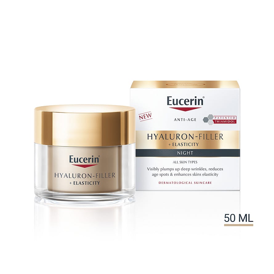 Eucerin Hyaluron-Filler + Elasticity Night Cream är en återfuktande och effektiv nattcreme för mogen hud.